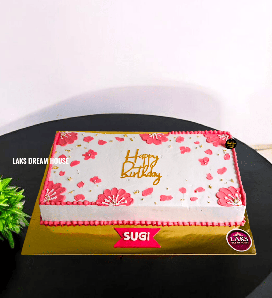Be the first to review “Pink and White Floral Cake | Rectangle Birthday Cake”